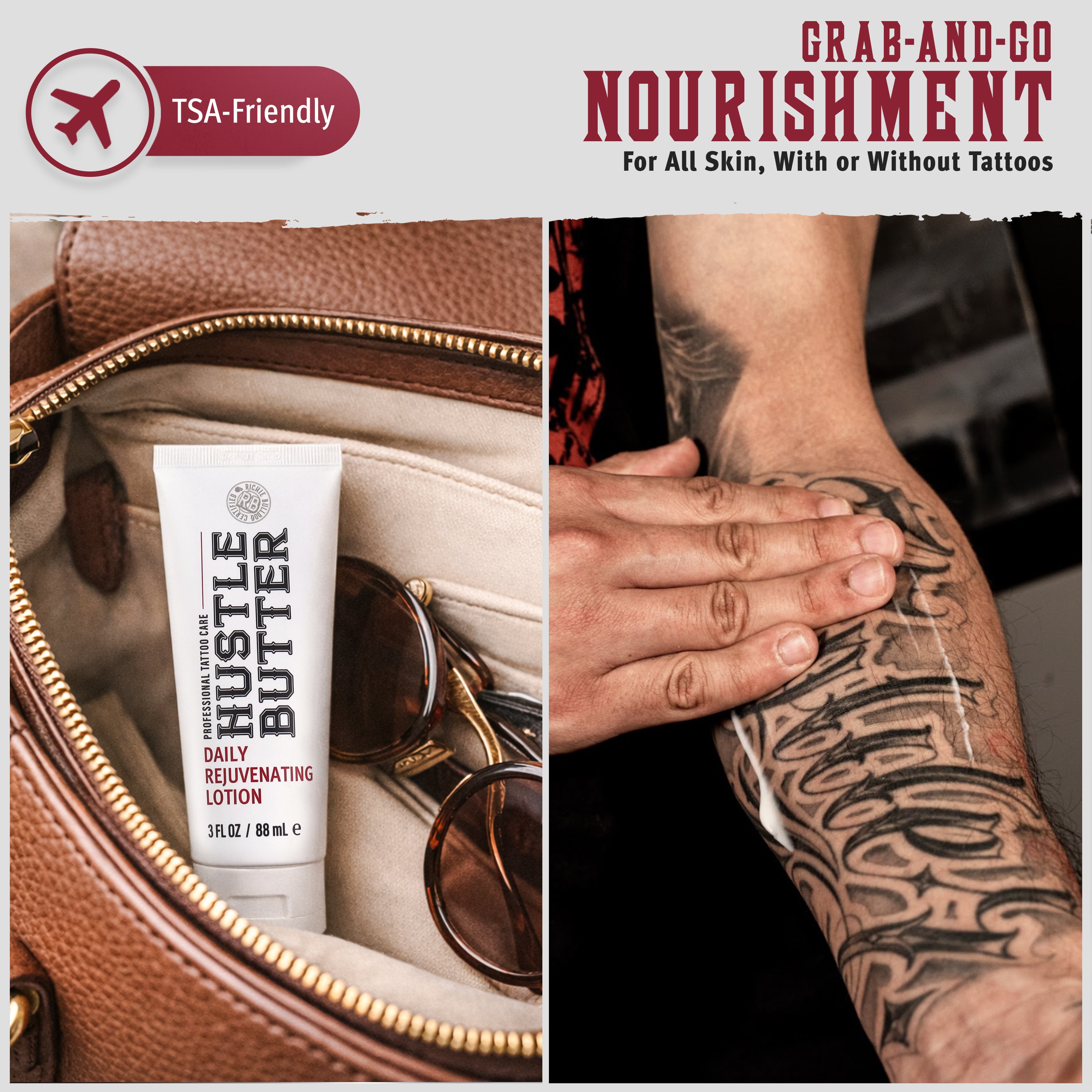 Deeply moisturizing, leaving ALL skin — tattooed or not — looking fresh and glowing.